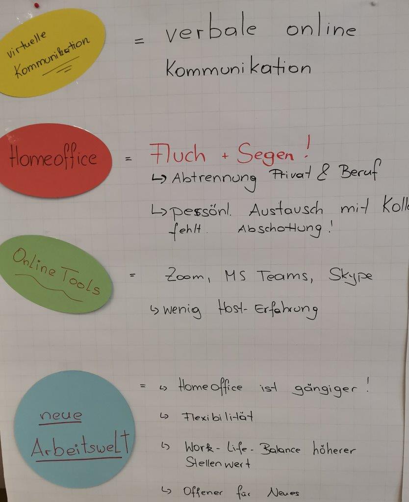 Inhalt waren dabei ganz generell Online-Tools und deren Chancen und Risiken. Auch über Zeitmanagement, Pausenkultur und ergonomische Aspekte wurde diskutiert.